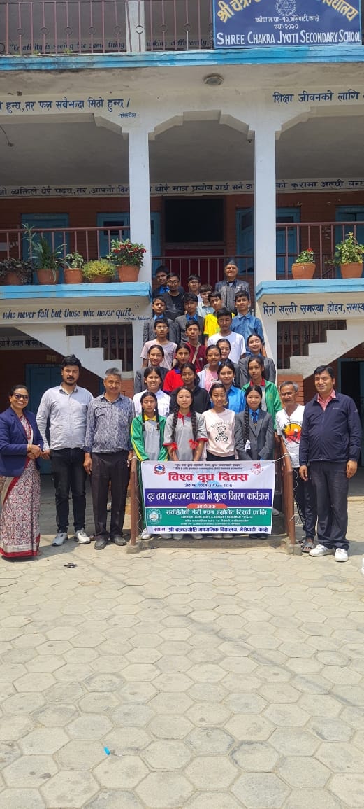 आज विश्व दूध दिवसकाे उपलक्षमा सर्वहितैषी डेरी एण्ड एग्राेभेट रिसर्च प्रा. लि. बनेपा १३, भैसेपाटी काभ्रेले दूध तथा दुग्धपदार्थहरु वितरण कार्यक्रम सम्पन्न गरेकाे छ । विश्व दूध दिवसलाई सफल पार्नका लागि सहयाेग गर्नुहुने जिल्ला ट्राफिक प्रहरी कार्यालय काभ्रेका प्रमूखज्यू लगायत सम्पूर्ण ट्राफिक प्रहरीज्यूहरु, श्री चक्रज्याेती मा. वि. भैसेपाटीका प्रधानाध्यापकज्यू लगाएत ब्यवस्थापन समितिका पदाधीकारीज्यूहरु, शिक्षकज्यूहरु साथै सम्पुर्ण विद्यार्थी भाइबैनीहरु प्रति हार्दिक आभार ब्यक्त गर्न चाहन्छाैं